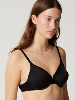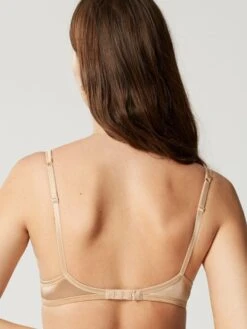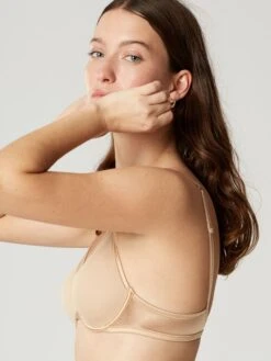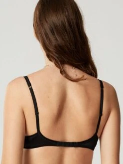 Der BH hat ungefĂĽtterte, aber ausgeformte Soft-Cups mit BĂĽgel, welche eine glatte Oberfläche haben. Die Cups sind mit einem edel glänzenden, gleichfarbigen Satinband eingefasst. Dieser BH ist besonders leicht und trägt nicht auf. Damit ist er z.B. auch fĂĽr den Sommer oder als T-Shirt BH geeignet…