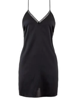 Das hochwertige Seiden Negligé ist in einem eleganten schwarz in den Größen 36 bis 44 in unserem Online-Shop erhältlich.