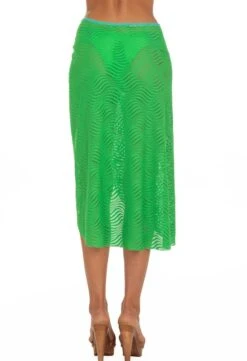 Der knielange Pareo aus schnelltrocknender Microfaser von Pin-Up Stars hat Laser-Cut Kanten und Details aus Häkelspitze. Diese Ergänzung zu Bademode ist assymetrisch geschnitten und kann mit einem gehäkelten Bindegürtel (abnehmbar) getragen werden.