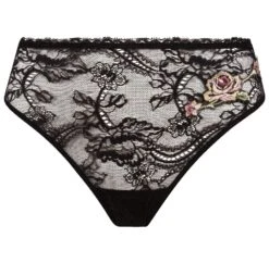 Der String mit Röckchen Arabeske Black ist eine luxuriöse Lingerie der italienischen Edel-Dessous Marke Ambra. Diese Lingerie im Look eines kurzen Röckchens hat einen eingearbeiteten String aus hautfarbenem Tüll. Die mit arabesken Blütenmotiven schwarz bestickte Tüllspitze ist darübergelegt – so entsteht ein interessanter Tattoo-Look Effekt.