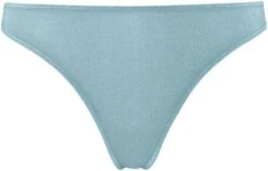 Die Seitenteile sind hochgeschlitzt, bzw. offen und mit kleinen Satinschleifen verziert. Die gesamte Wäsche ist transparent, jedoch hat der String einen Innenzwickel aus Baumwolljersey.