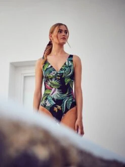 Dieser zeitlose Badenanzug von Fürstenberg überzeugt durch seinen modischen Druck und die feine Farbstellung in schwarz mit grün.