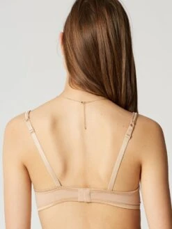 Der BH hat dĂĽnn wattierte Schalen-Cups mit BĂĽgel, welche eine glatte Oberfläche haben. Die Cups in leichter Triangel-Form werden bei dieser Marke als „Vollschale“ bezeichnet. Sie haben leichte, nahtlos ausgeformte und anschmiegsame Einlagen und sind mit einem edel glänzenden, gleichfarbigen Satinband eingefasst. Dieser BH ist besonders leicht, trägt nicht auf – und kaschiert dennoch die Brustwarzen. Damit ist er z.B. auch fĂĽr den Sommer oder als T-Shirt BH geeignet…